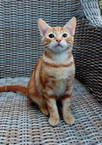 Simon is an inquisitive shadow who loves to follow you around the house, supervise your daily tasks, and politely (or not so politely) invite himself to dinner. He thrives on attention, pats, and being part of whatever you’re doing. He’s also an enthusiastic player, with a bit of a rough-and-tumble style. Because he can get a little overstimulated or reactive if touched in certain spots, he’s best suited to a home without young children. But with adults or teens who understand cat body language, he’s an absolute delight.