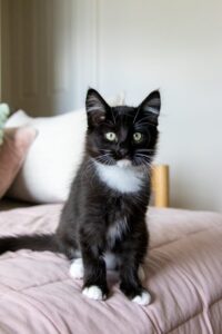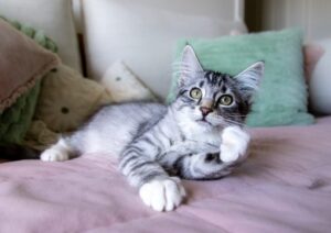 Petite and gentle, Allie has a sweet, feminine nature and a curious, playful side. She enjoys exploring new toys and is easy to care for, with a great appetite and a happy, relaxed temperament. Allie has been an indoor only cat in foster care and must continue this in her forever home for her own safety and the safety of our wildlife.