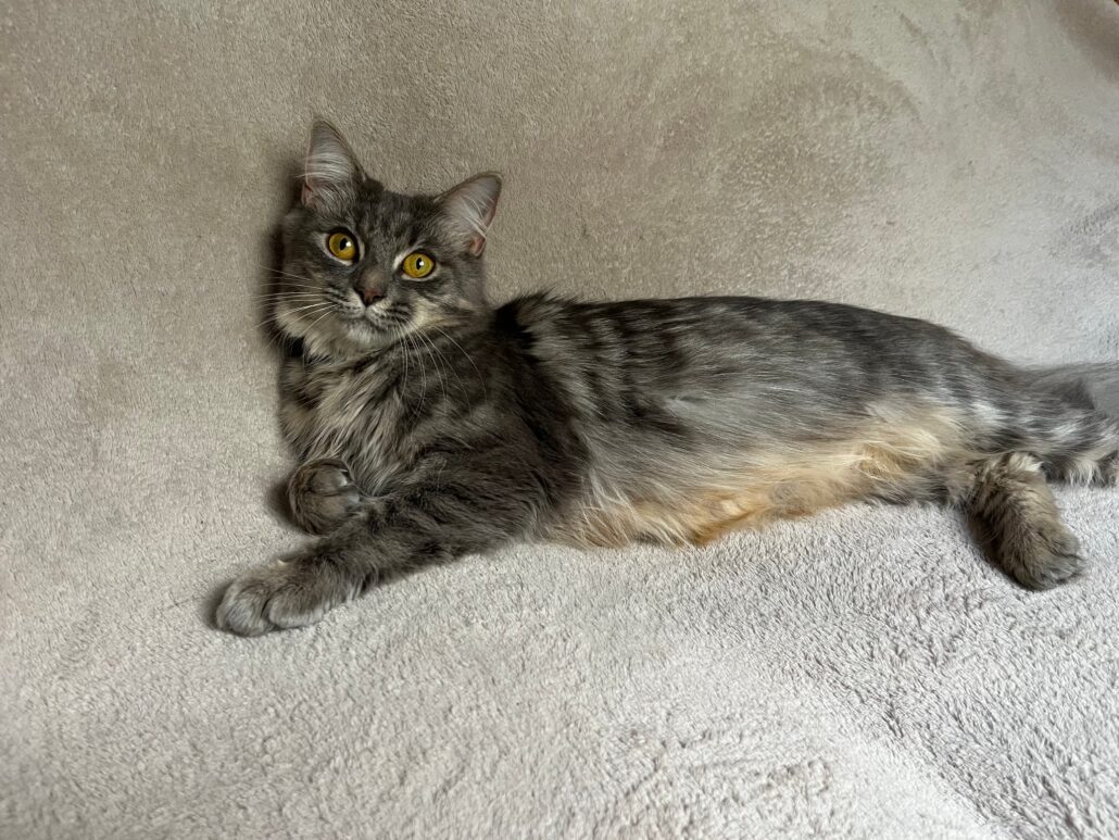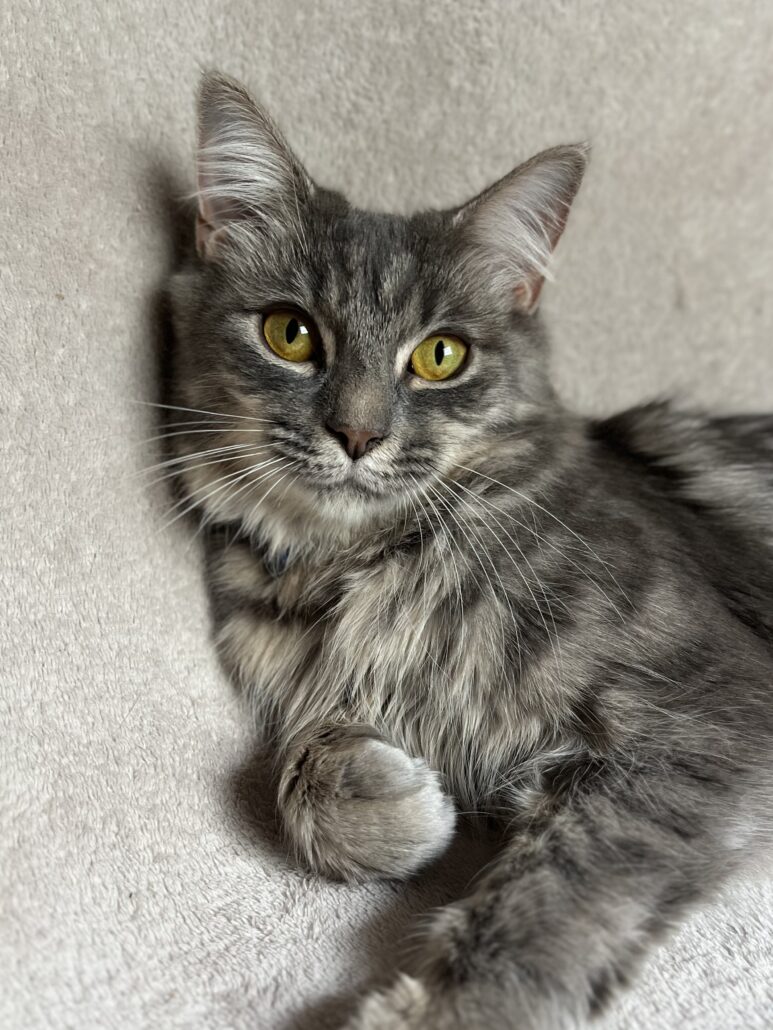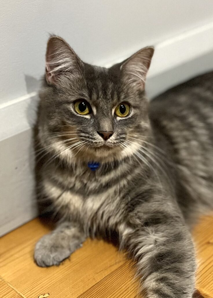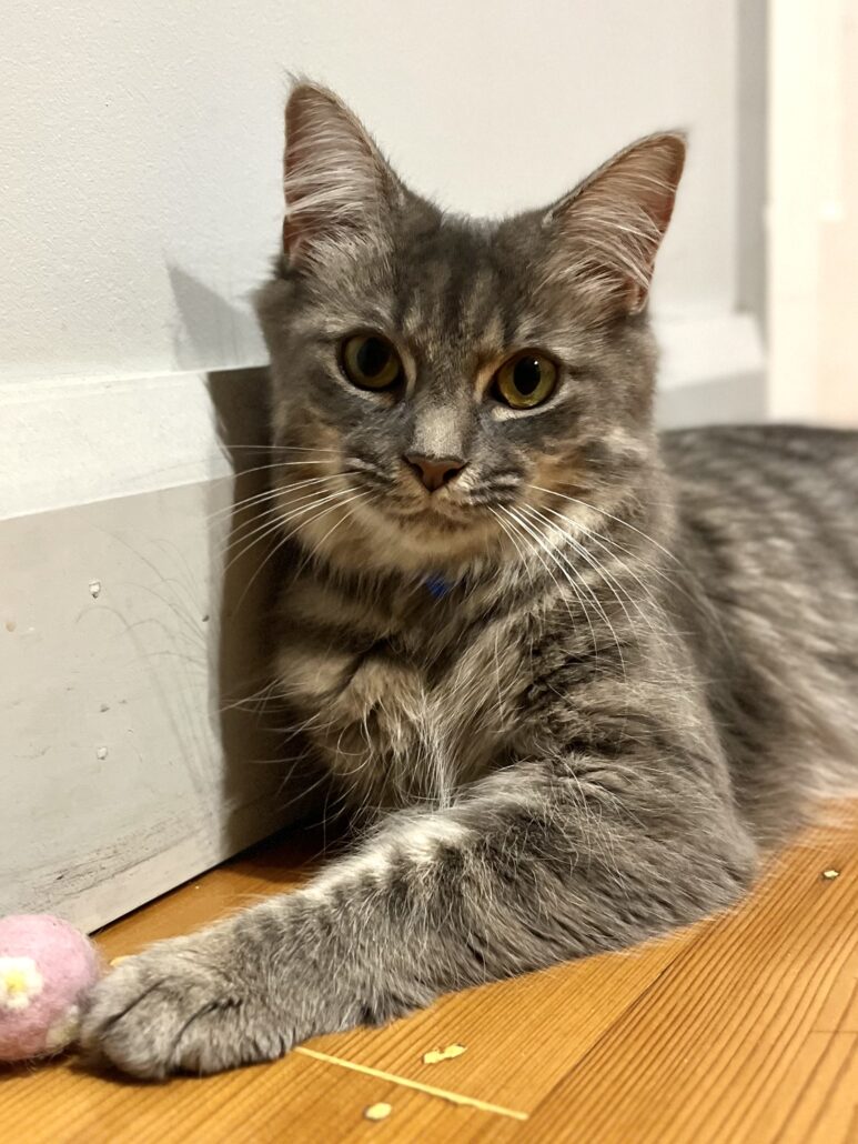 This gentle, affectionate girl, came into care with her four babies and has been the most devoted, loving mum you could imagine. Her whole little family has blossomed into sweet, loving cats – and now it’s time for them all to find the forever homes they deserve. Emmie is a total sweetheart who absolutely adores being brushed and loves nothing more than curling up beside you with a loud, contented purr. Though she’s been a wonderful mum, Emmie is still very much a playful kitten at heart. She delights in zooming down the hallway chasing her favourite felt ball, and she’s always up for a fun game of rough-and-tumble with her babies.
