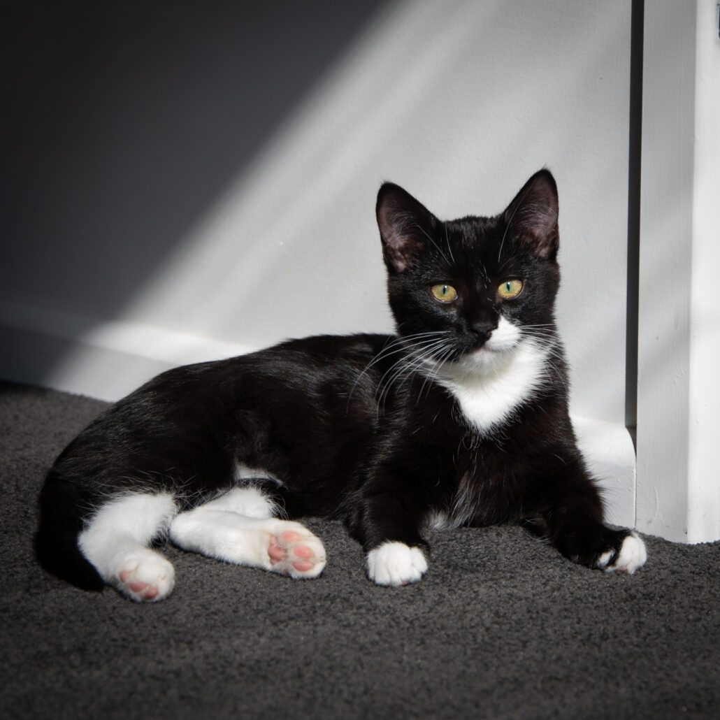 Happy is equal parts sweet and self-assured — the kind of cat who’ll steal your heart, and maybe your snack if you’re not watching.