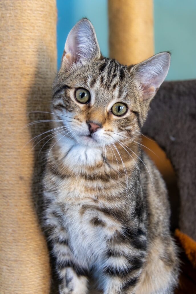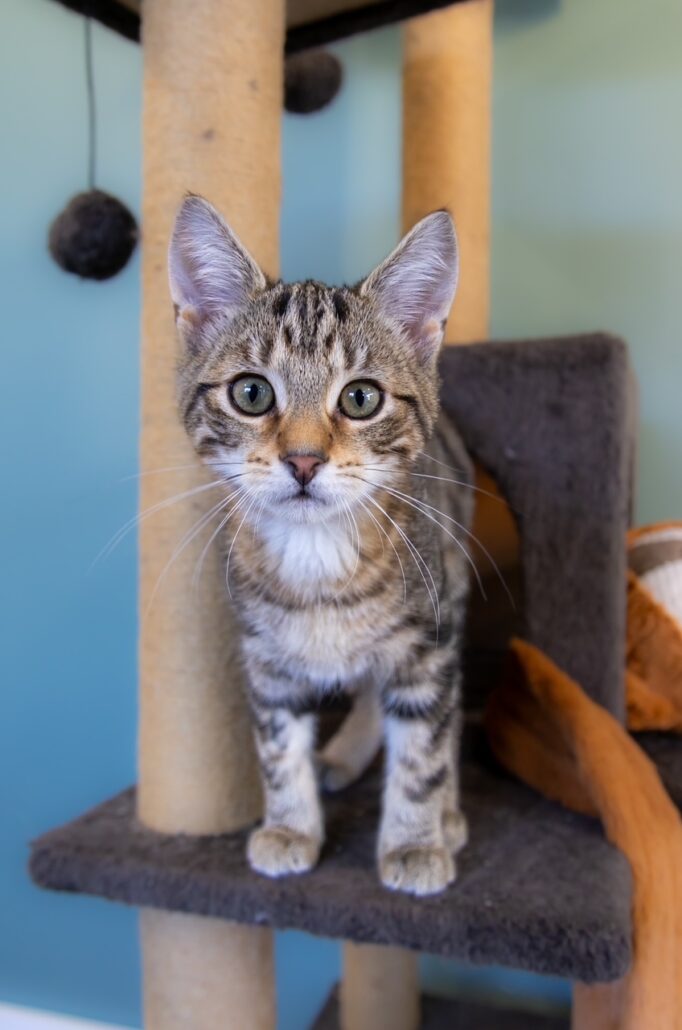 Johnny loves snuggling up close and playfully nudging his humans for attention. He’s confident, curious, and oh-so-cute — the kind of kitten who instantly steals your heart. He also loves his toys and would be thrilled to have a cat scratcher in his new home for climbing and stretching.