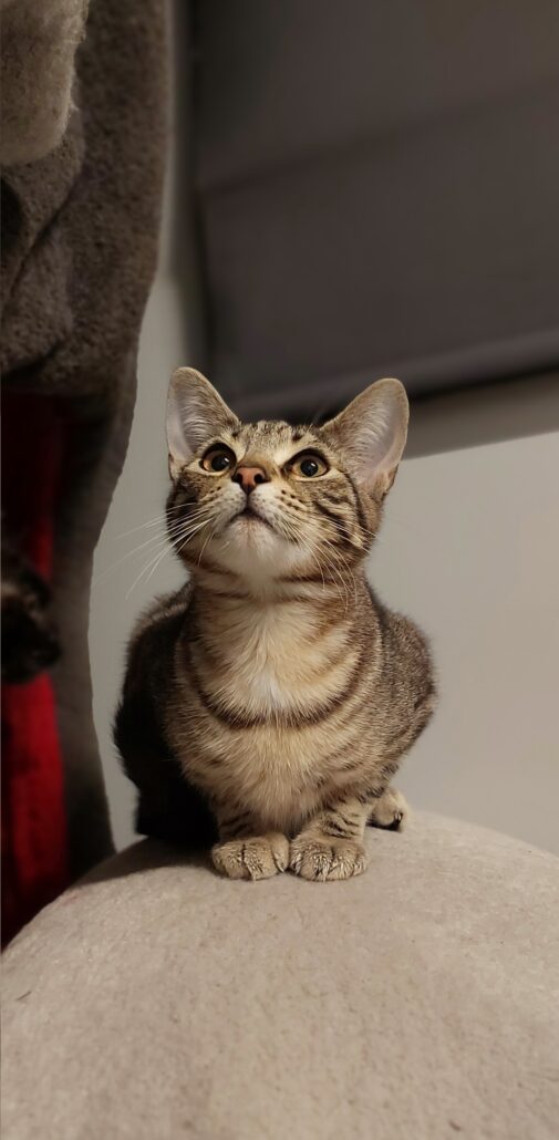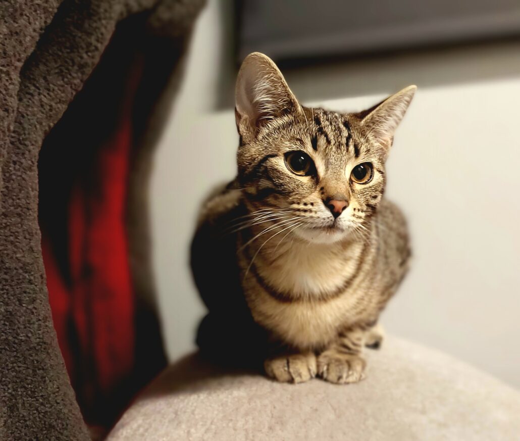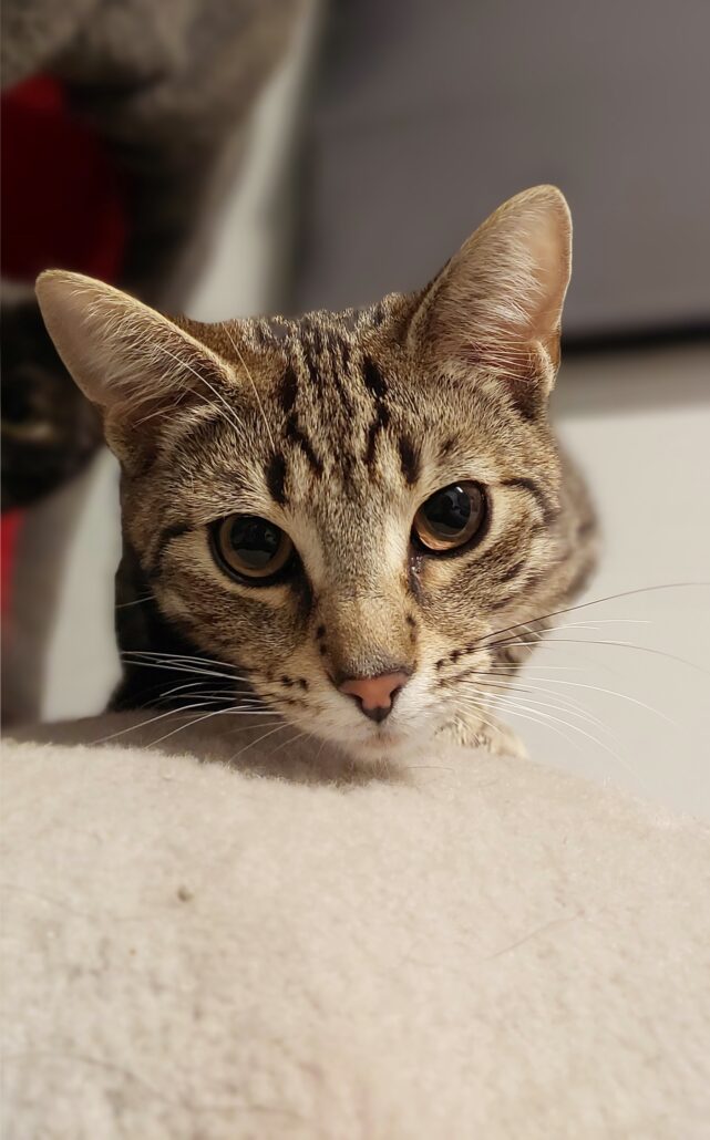Marple is learning to enjoy pats, excels at playtime, loves sitting outside in her cat-enclosure watching the world go by. With a little patience, she’ll settle in and reward her new family with endless affection. Marple has been an indoor only kitty while in foster care (with the exception of her cat-enclosure) and must continue this in her forever home for her own safety.
