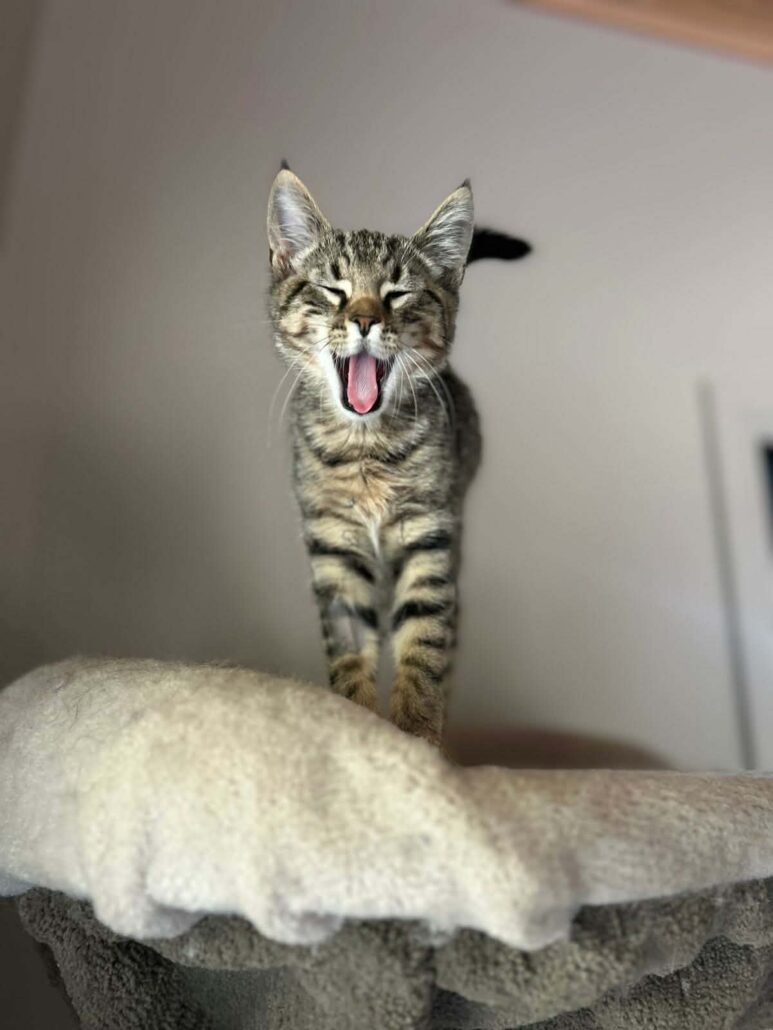 NutriGrain purrs like a truck engine the moment he sees you. He’s a people-first kitten who prefers human company and is happiest right by your side. He doesn’t mind quiet, older cats or calm dogs that keep to themselves, but what he really wants is a person to call his own.
