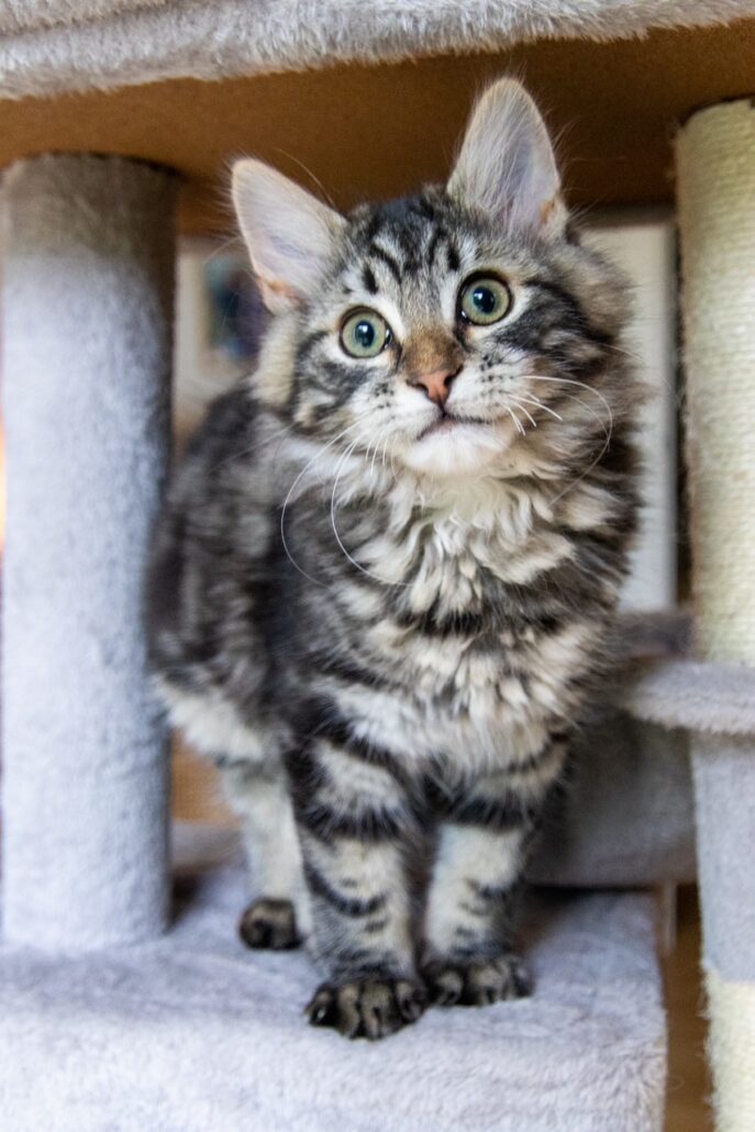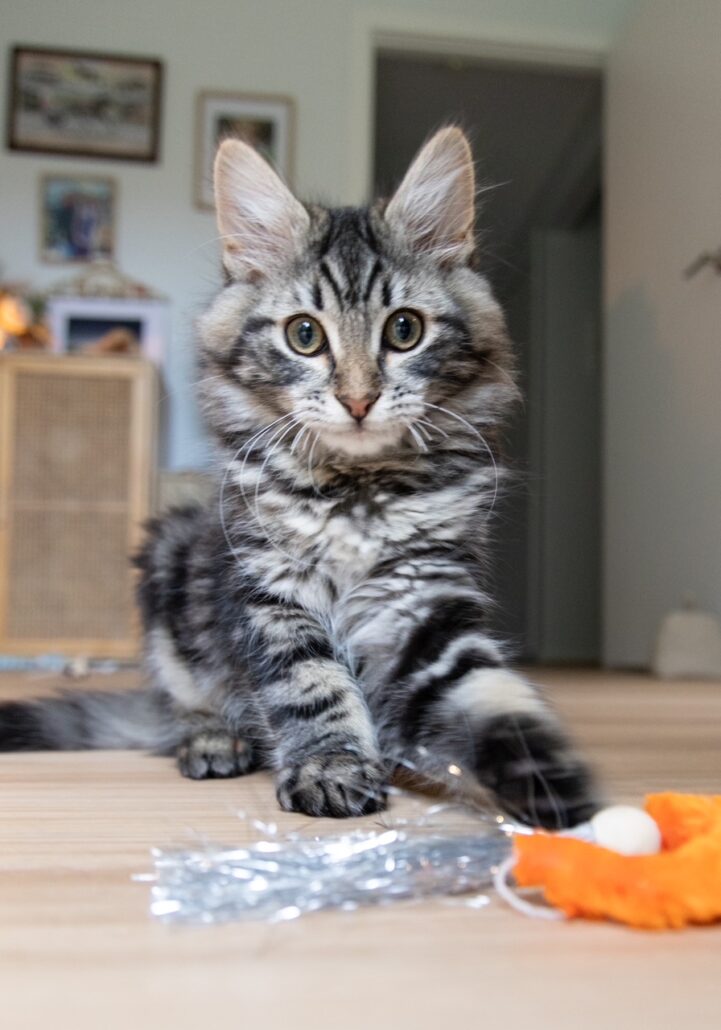 I love to sit on my foster mums knee, turn on my v8 engine and lap up all the pats! I'm never far away from the action at any time (except when I am napping), but I do love to sneak away and enjoy a play with my toys. I love the company of other cats, so my forever home must have a feline friend for me to play with. I love to play and chase things, catch magic toys that are waved in front of me or a screwed up piece of paper. I've been an indoor only kitty while in foster care, and must continue this in my forever home for my own safety.