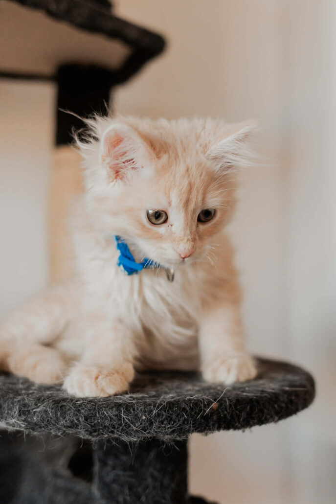 Because I am very high energy, I would be best suited to a home with an energetic cat or dog friend. My new family would also need to be prepared to brush me regularly to prevent matting of my glorious coat. I’ve been an indoor kitten while in foster care, and would need to continue to live indoors in my new family for my own safety. Could you be my forever family? Can’t wait to meet you!