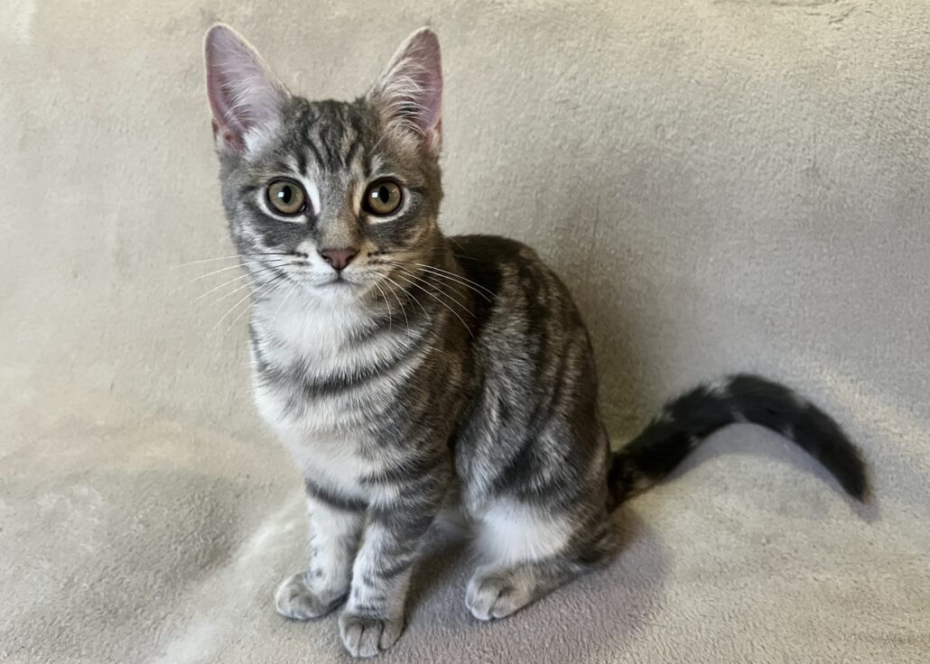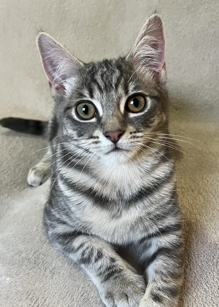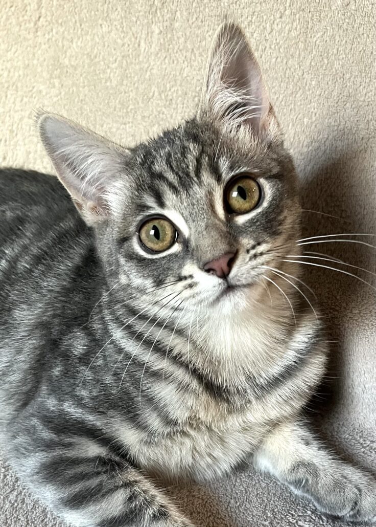 This adorable little girl is incredibly gentle, affectionate, and full of playful energy. She’s the kind of kitten who steals hearts, and she’s done exactly that since the day she arrived with her mum and three sisters (who’ve all found their forever homes).