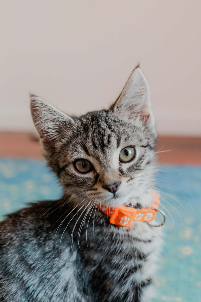 I’ve been in foster care since I was quite young with my siblings, two adult feline foster siblings, and two adult resident cats, so it’s safe to say I get along well with kitty friends. I’ve also been around a friendly dog and gentle children, and I loved both. Because I am very social, I would need to go to a home with feline friends or a dog friend that enjoys playing with me. My Foster mum thinks I would get quite lonely as a solo pet. I’ve been an indoor kitten while in foster care, and would need to continue to live indoors in my new family for my own safety. Could you be my forever family? Can’t wait to meet you!