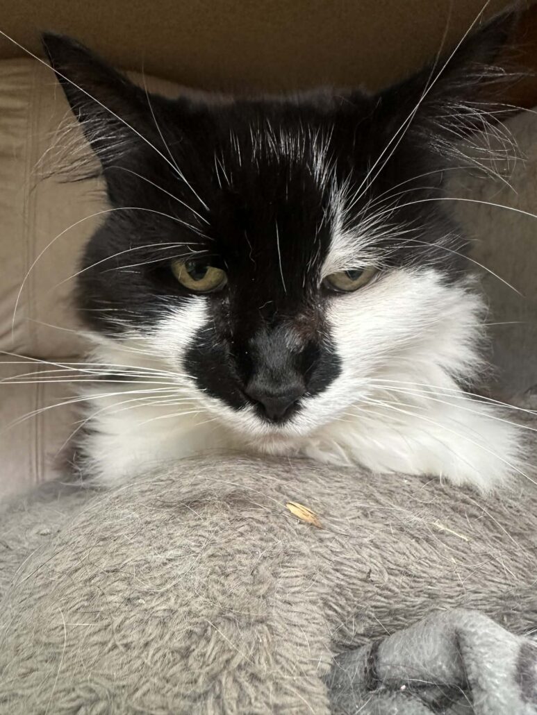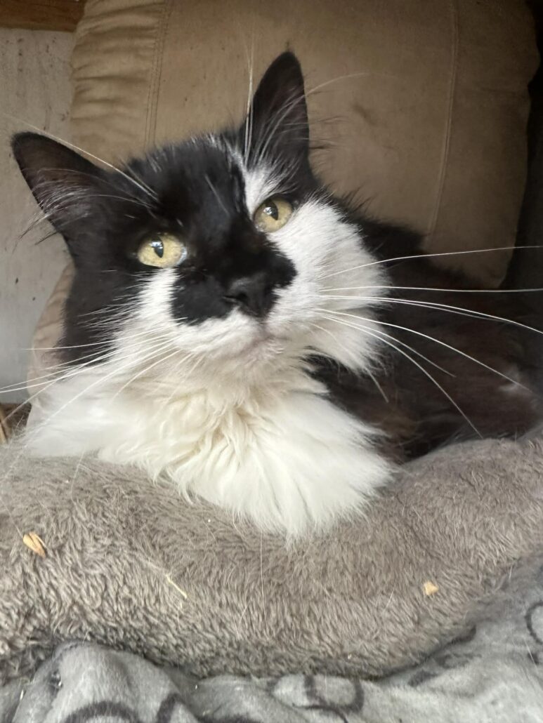 A regal older girl, Scootie loves the simple things in life: a soft, comfy bed, sunny spots by the window, and watching the birds go by. While she’s not overly demanding, she does enjoy gentle companionship and will happily follow you around just to be near you.