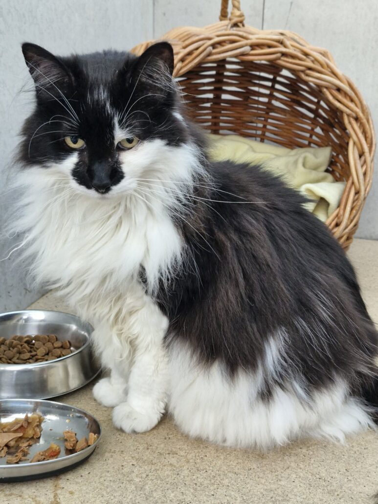 As she’s getting older, Scootie will need a little help keeping her coat looking its best. She also has some arthritis, which is common at her age, but it’s well managed with a daily supplement added to her food.